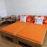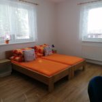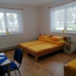 v budově v pokojích po 2 – 6 lůžkách se společnou kuchyní a sociálním zařízením.